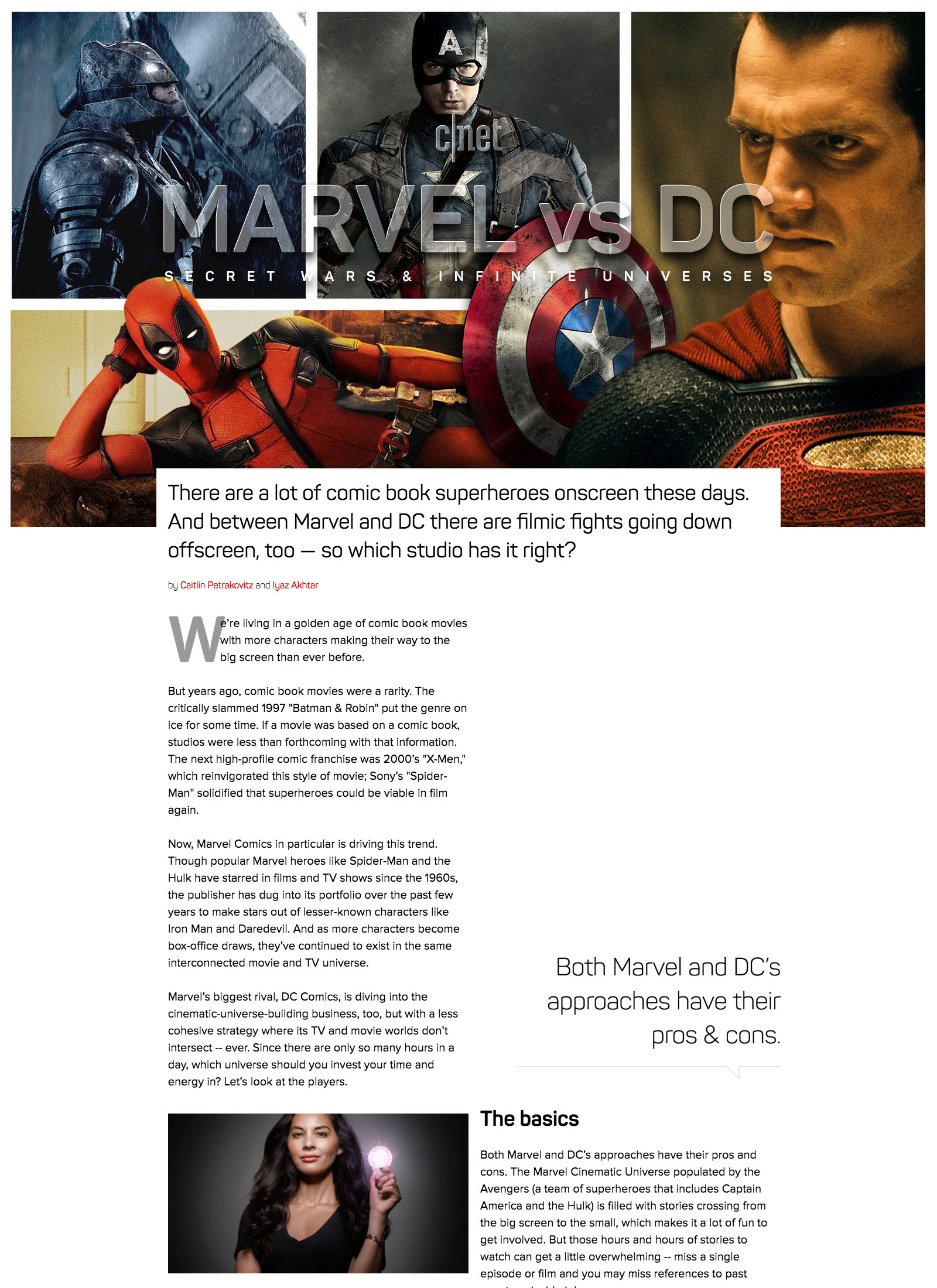 Marvel vs. DC is an editorial design piece that compares the two iconic comic book franchises and their cinematic universes to determine who does it best. comparison of how the respective comic book franchises are projected onto the big screen. The visual approach blends the classic comic book aesthetic with the sleek, modern style of their blockbuster movies, creating a design that bridges past and present.