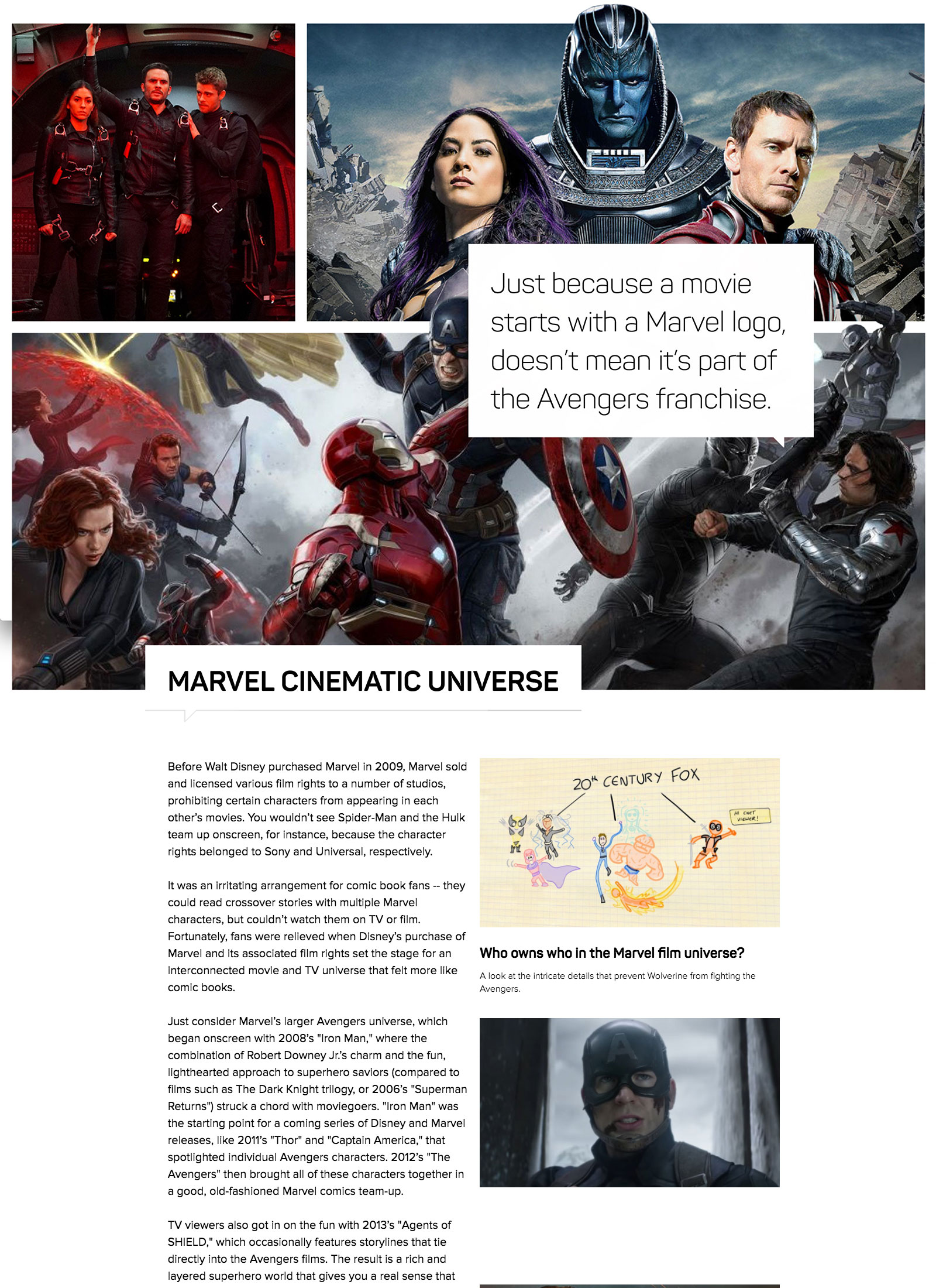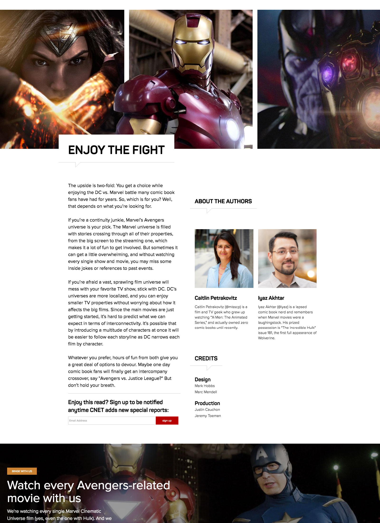 Classic styled comic book panels served as the inspiration for the large visual treatments. Rather than use run-of-the-mill studio provided imagery, we decided to tie them into the comic book world by converting them into panels that utilized multiple characters from both brands.