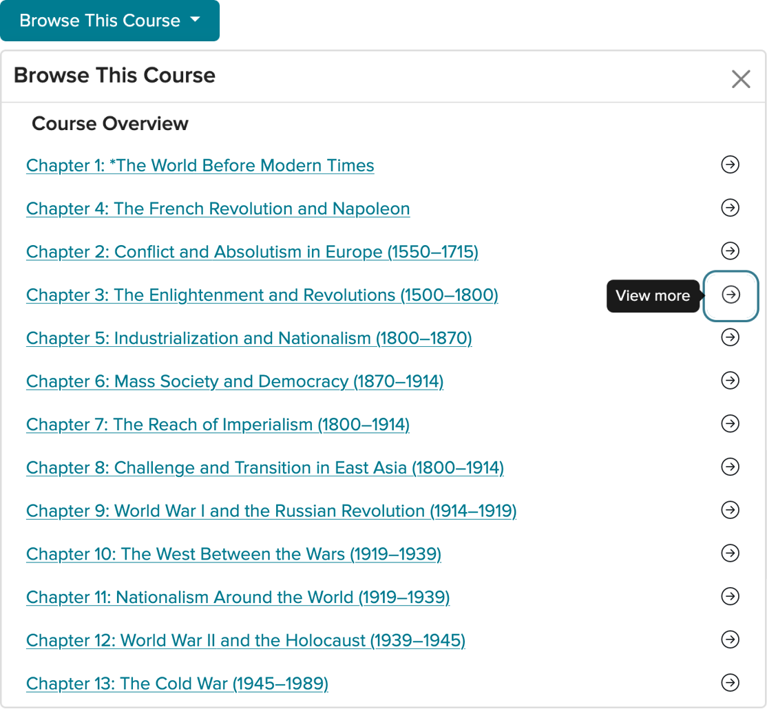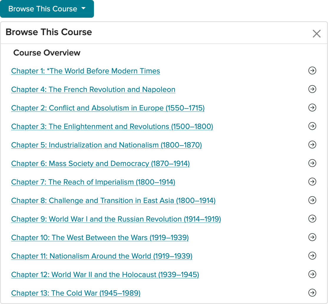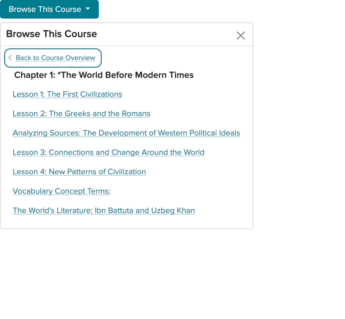Within the product, to access the tree hierarchy of the course, teachers had to first click "Browse This Course" to expose the content structure.