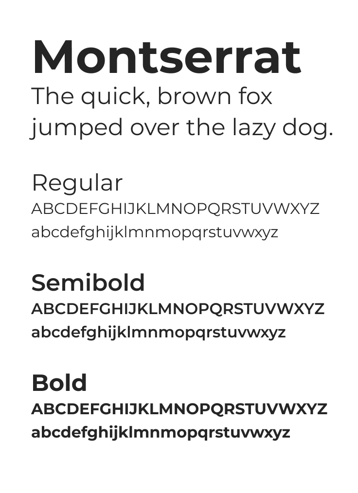 Montserrat was chosen for its wide, solid structure and tall x-height, giving the UI a sense of stability and reassurance.